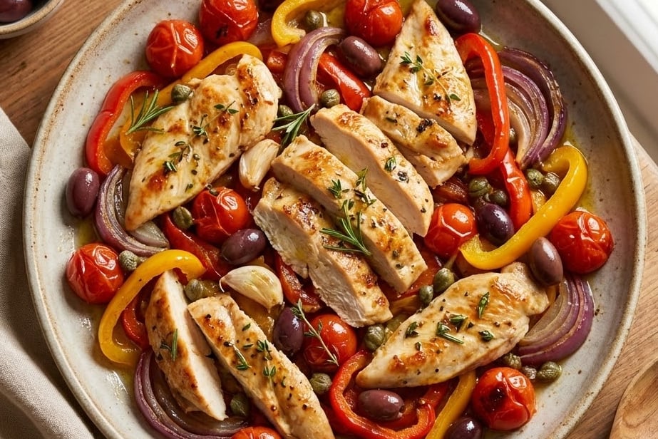 Il pollo alla mediterranea in padella è un secondo piatto semplice e profumato, ideale per una cena leggera ma ricca di gusto. Pomodorini, olive e capperi creano un sughetto delizioso che rende il pollo morbido e saporito. Una ricetta pratica, perfetta per chi cerca un piatto genuino, colorato e adatto alla cucina di tutti i giorni.