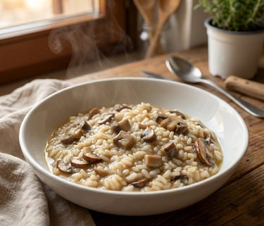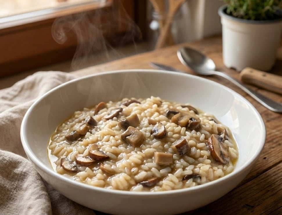 Risotto ai funghi porcini cremoso, preparato con calma e ingredienti veri. Ricetta tradizionale fatta in casa, spiegata passo passo con consigli pratici.